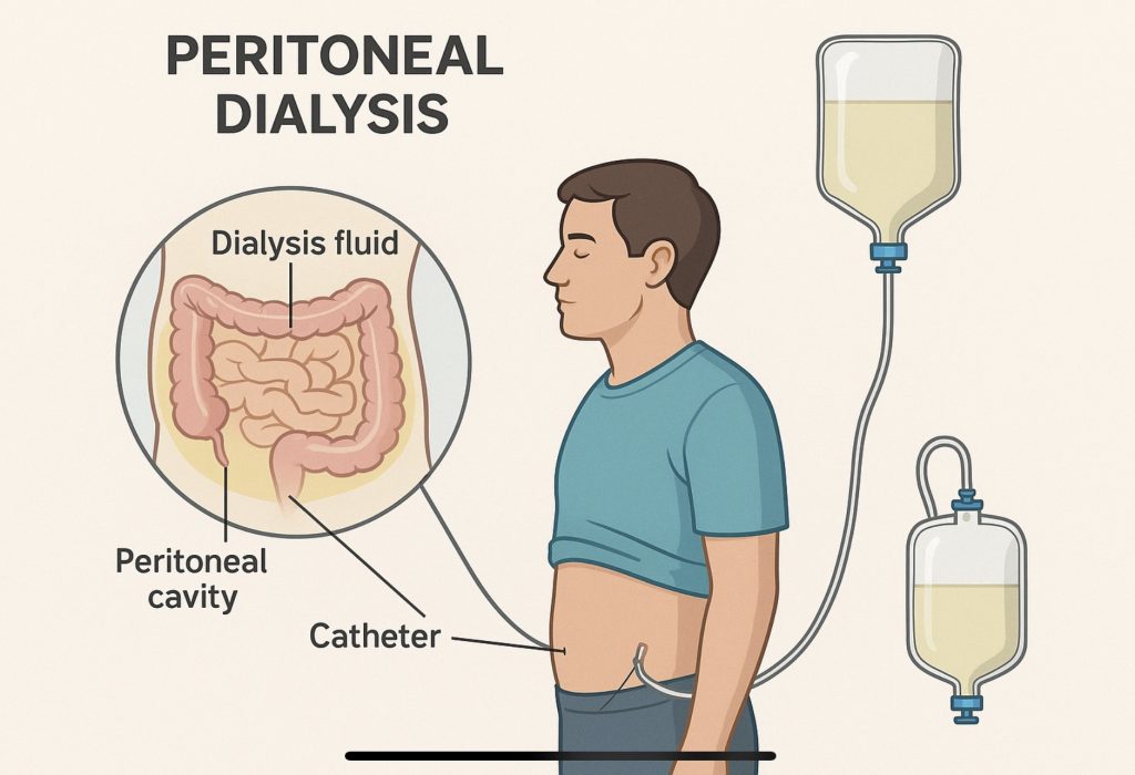 - Dwell: The fluid stays inside (usually 4–6 hours). It absorbs waste and extra fluid from your blood through the lining of your abdomen.